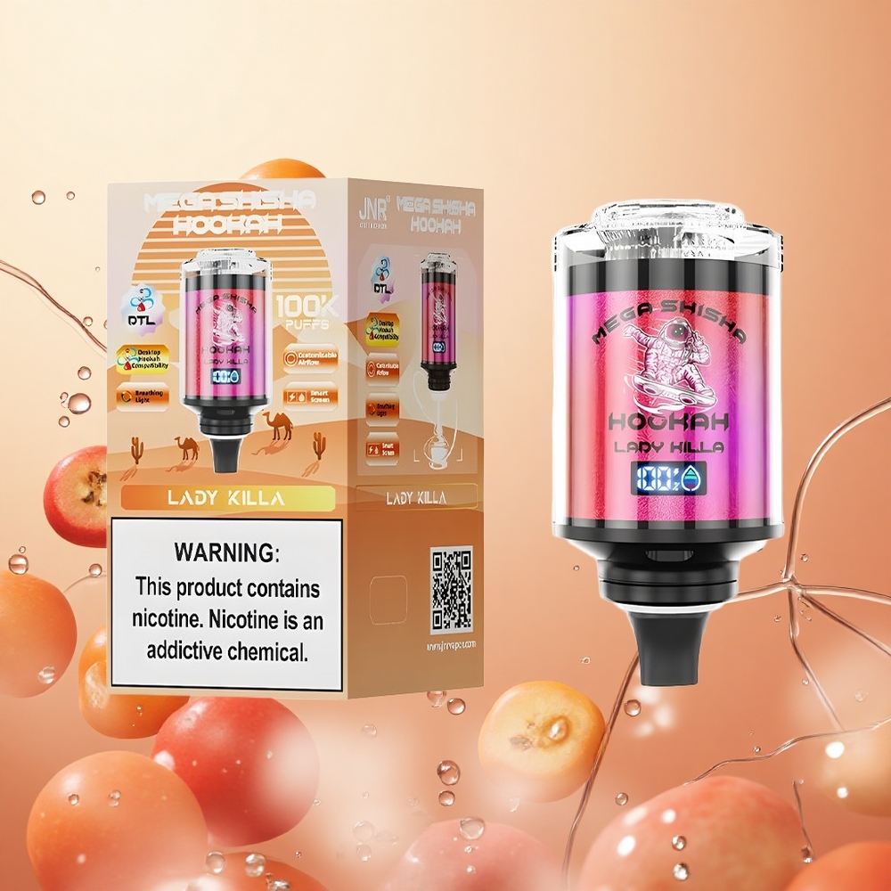 JNR Mega Shisha Hookah 100K Compatibilidad de Escritorio 2200mAh Pantalla Inteligente Lady Killa